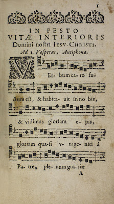 "This is one of the earliest chant editions specially destined to the Seminary of Saint-Sulpice, comprising the office and mass to be celebrated on the occasion of three feasts: Vitae interioris Domini Nostri Iesu Christi (celebrated on the Thursday following the second Sunday after Easter); Divini Sacerdotii Domini Nostri Iesu Christi (celebrated on August 30); and Vitae interioris B. Mariae Virginis (celebrated on October 19)."