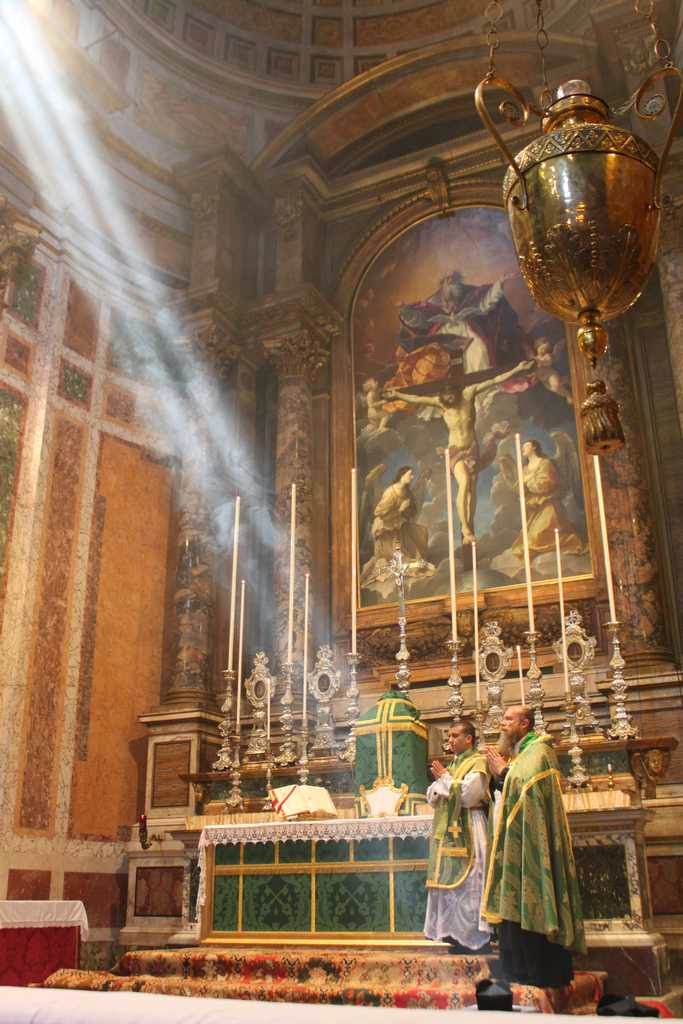Rationalism seeks the linguistification of reality, seeks to capture transcendent mystery in handy formulas, speaks on and on as though one could create an image of eternity if one only talks long enough. Catherine Pickstock is good at critiquing this aspect of the reform. The old liturgy knows better: the priest praying at the altar, primarily addressing himself to God on behalf of all; the schola chanting antiphons and psalms; the incense rising and bells ringing; the people following their missals or praying rosaries, singing the Creed or just watching, letting their souls be taught by images, sounds, motions—everyone is glued together by the complex simplicity and simple complexity of the divine mysteries, which are always somehow far beyond us and yet right there before us and inside us, at once transcendent and immanent.