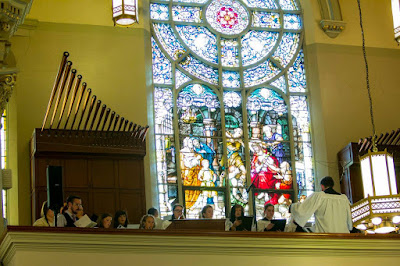 I can second what Steve says about the Mass and the music: just magnificent in every way. We're always told that the liturgy is a foretaste of heaven on earth, but sadly, it only rarely looks and sounds and feels that way. This day was one of those times when it rings true. I would add that it was deeply moving to see many pews full of Catholic schoolchildren (grades 1 to 8 from the look of it), who had been bused in from Pittsburgh to be present at this auspicious pontifical celebration. I thought to myself: This is the Mass that people thought they could bury forever; but they are dead and gone, and it is alive and well. These children were given a feast for their senses and souls. They assisted at the Roman Rite in all its fullness. The New Evangelization takes one small step forward.