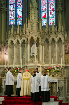 | His Excellency Peter Elliot, Auxiliary Bishop of Melbourne, Australia, who also spoke at the conference, and Mons. James O’Brien, one of the principal organizers, attend in choir. |