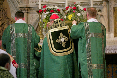 The annual Fota Liturgical Conference in Cork, Ireland, is not only an important scholarly gathering, but includes a number of ceremonies celebrated at the highest level of our Catholic liturgical tradition. This year, on Saturday, July 9th, the conference’s keynote speaker, Cardinal Raymond Burke, was the celebrant of Pontifical Vespers for the eve of the Eighth Sunday after Pentecost, after which he confirmed several young parishioners of the hosting church of Ss Peter and Paul. The wonderful Lassus Scholars, conducted by Dr Ite O’Donovan, sang the Gregorian chants for Saturday Vespers, and the