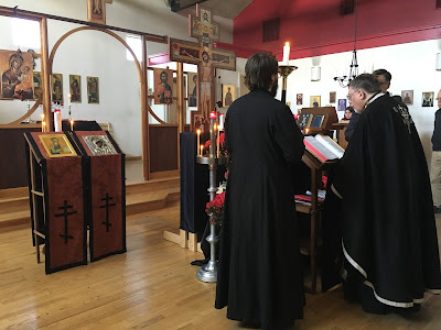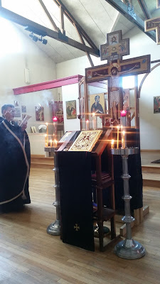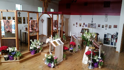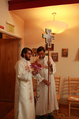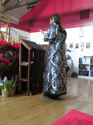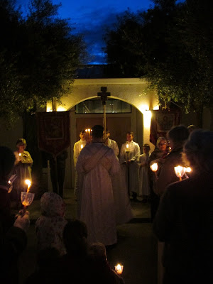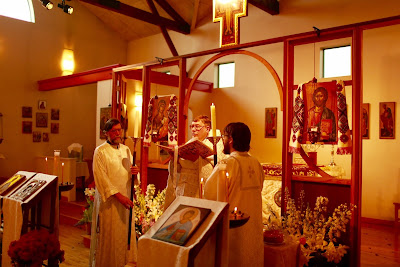 In the Byzantine tradition, the day before the Ascension is known as the “Leave-taking” of Easter; this is the official end of the Paschal season, marked by dropping certain features from the liturgy. (E.g., the famous chant which begins every Divine Liturgy in the Easter season, “Christ is risen from the dead; by death He trampled death...”, is discontinued after today.) I thought it would be good to mark the day with one last bit of unfinished business from our most recent photopost series. These photos of the major ceremonies of Holy Week and Easter were taken at St Peter’s Eastern Catholic Church in Ukiah, California, which labors mightily to make the richness and beauty of the Byzantine liturgical tradition accessible to all and sundry. The last few were taken on Bright Wednesday, when Fr David Anderson and his parish welcomed a visit from the Marian Sisters of Santa Rosa, they of the famous amice ties. Our thanks to Mr Philip Gilbert, a member of the parish who is now studying for the Greek-Catholic priesthood, for sending these in.