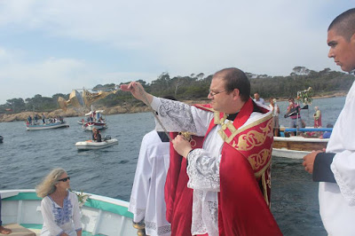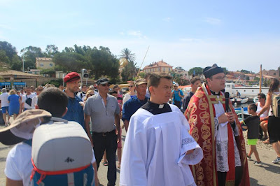 Our good friends of the Fraternity of St Joseph the Guardian in La-Londe-Les-Maures, France, also have the pastoral charge of the church of St Anne on the beautiful little island of Porquerolles. Each year, for the feast of Ss Peter and Paul, they have a blessing of the boats in the waters of the island’s port, with prayers for those who have been lost at sea, followed a procession with a statue of St Peter, and Mass at the church. Our thanks for their kind permission to reproduce these photos from their Facebook page.