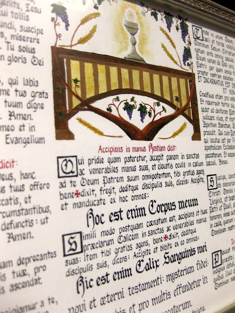 In that vein I couldn't resist circling back to our post from earlier this morning about a Missa Cantata offered a few days ago at St. John Vianney College Seminary in Minnesota. While we focused on the Mass itself in that post, what I hadn't mentioned was the fact that the altar cards which were used for that Mass were hand designed and executed by one of the seminarians of that seminary, Dan Schumaker.
