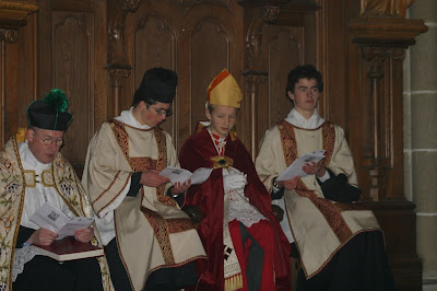 Chavagnes International College, a Catholic boarding school for boys located in Chavagnes-en-Paillers in western France (near Nantes), is well known for cultivating a strong liturgical life. In accordance with the old English tradition, a boy-bishop is appointed from among the students on the feast of St Nicholas, who presides over the celebration of Vespers and sits at the high table for the meal following. (See below for a bit more about this tradition.)